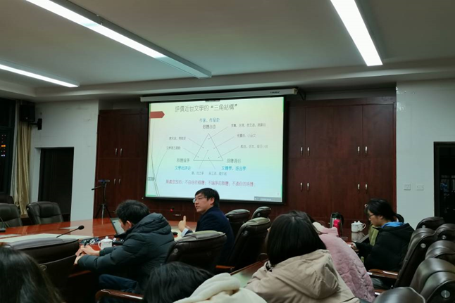 12月4日下午,武汉大学陈水云教授在明德3号楼会议室举行《清代词学体系的建构与近代转型》专题讲座,讲座由文学院傅宇斌教授主持。陈水云教授结合自己多年积累的文学阅读经验及思考,讲解了词学概念流衍与意义扩充,分析了从《古今词话》到《词学集成》等汇编型词话所建构的知识体系,阐述了民国初年教科书的编写与词学体系建构的现代转型。