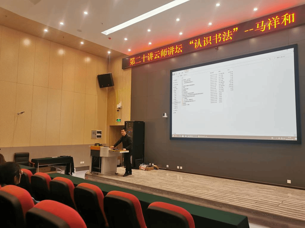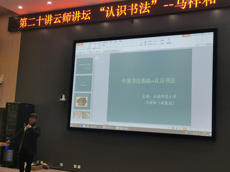 为大力弘扬中华优秀传统文化,搭建广大师生及书法爱好者学习交流的平台。“云师讲坛”第二十期讲座于12月18日晚七点在我校呈贡主校区教师教育国家级实验教学示范中心214报告厅举办,本次讲坛邀请了云南师范大学美术学院副教授,硕士研究生导师马祥和担任主讲嘉宾,主题为《认识书法》。讲座由科学技术处副处长刘连杰教授主持。同时还有100余名师生参加了此次讲座。