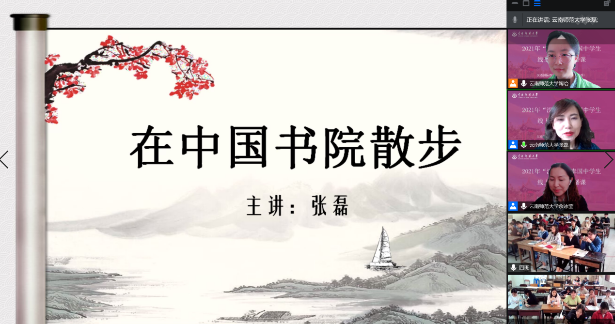 410日,国际汉语教育学院举办的2021“汉语桥泰国中学生线上春令营在我校呈贡主校区同析2号楼、泰国拜县中学大礼堂和清迈大学孔子学院会议室举行结营典礼。国际汉语教育学院党委副书记常数、副院长李天明,拜县中学副校长金达女士,清迈大学孔子学院中方院长沈毅等多位领导出席,云南师范大学汉语国际推广师资培训基地(昆明)、学院留学生招生外事办公室、拜县中学教师代表以及线上春令营全体同学参加了典礼。