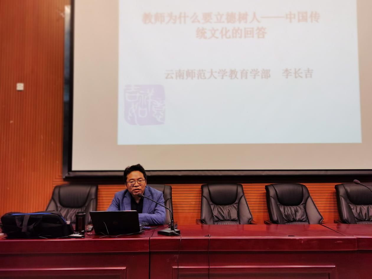 教育学部主任李长吉同志以“教师为什么要立德树人——中国传统文化的回答”为主题,通过探析立德树人的思想根源,讲解了中国传统文化中的教育思想精髓,为大家上了一堂生动的党课、思政课、传统文化课和教育史课,进一步坚定了同学们的文化自信。