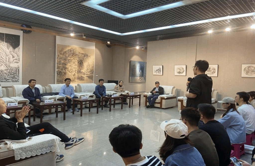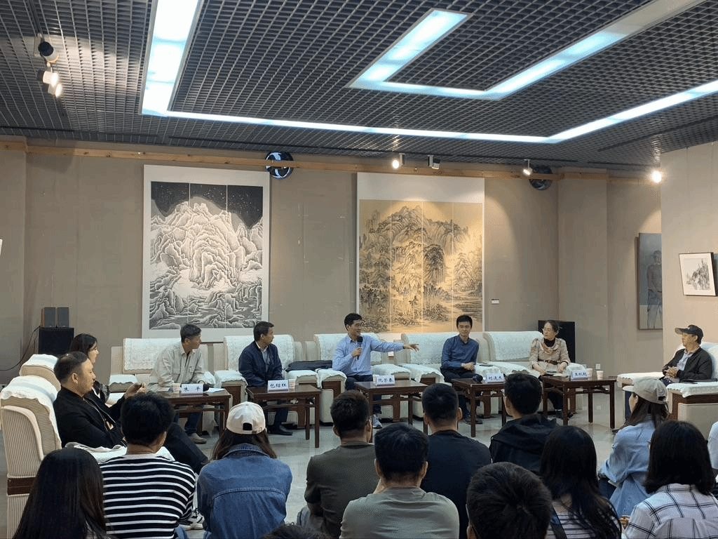 随后,阮荣春教授以“中国山水画创作与理论研讨”为主题,进行美育大讲堂首期讲授。他以人求学经历为切入点,讲解了中国传统山水画的当代发展,并与我校各学院师生代表进行深入的学术交流。他主张弘扬院体画风,提出的中国画要有静气、文气和正气的“三气”理论正是他本人创作秉持的原则。接着,阮荣春教授进行了现场创作交流并进行了山水画教学示范。