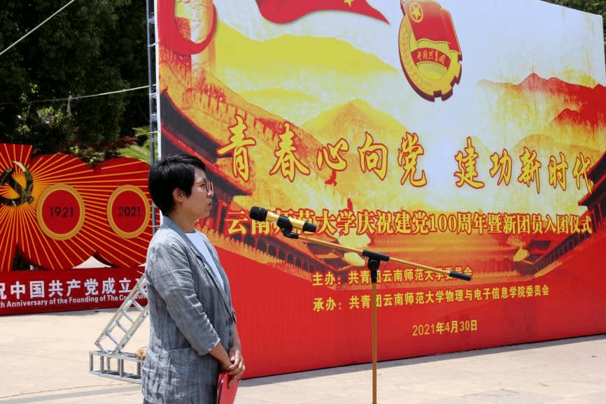 五四青年节来临之际,由校团委主办、物电学院团委承办的庆祝建党100周年暨新团员入团仪式于4月30日中午在呈贡校区红烛广场举行。校团委全体成员,物电学院相关领导,各学院(部)团委书记、新老团员代表等参加仪式。
