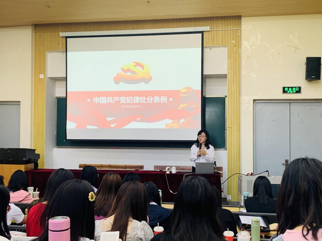 学部党委副书记朱静虹同志带领党员发展对象学习《中国共产党纪律处分条例》的亮点和意义,通过解读条例内容,鼓励全体党员发展对象树立纪律意识,增强纪律观念,遵守条例与章程。