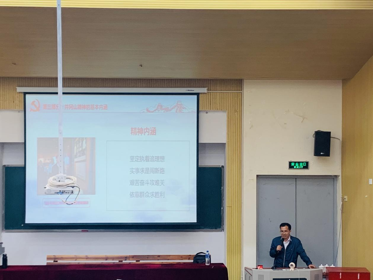 教育学部副主任刘六生同志以“宣讲党史,学习四史,坚定中国特色社会主义四个自信”为主题,带领广大党员发展对象深刻学习“四史”,感受中国的崛起和发展,感受强有力的中国力量,感受党的坚强领导与不懈奋斗;通过对井冈山精神,两弹一星精神的讲解,广大党员发展对象被老一辈党员的精神和优秀品质所折服,更加坚定了“四个自信”。