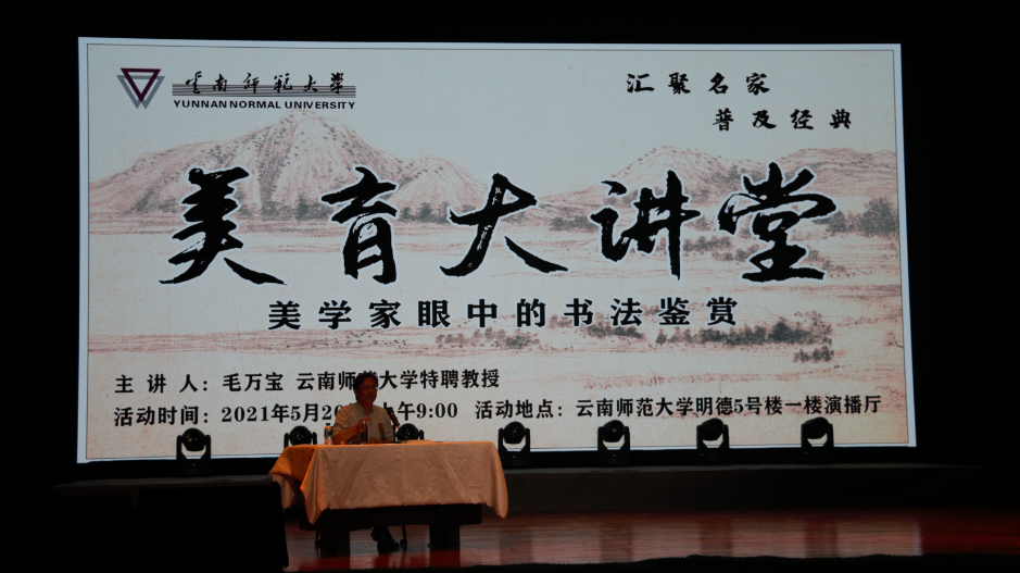 继4月27日“美育大讲堂”首场圆满落幕,5月20日上午,在明德5号楼一楼演播厅迎来了“美育大讲堂”第二期活动。本期由科学技术处主办,邀请毛万宝教授担任主讲嘉宾,美术学院马祥和副教授为学术主持,音乐舞蹈学院李孟璇老师为总策划,呈贡校区各学院(部)学生代表、部分教师代表、科学技术处相关工作人员共500余人参加。