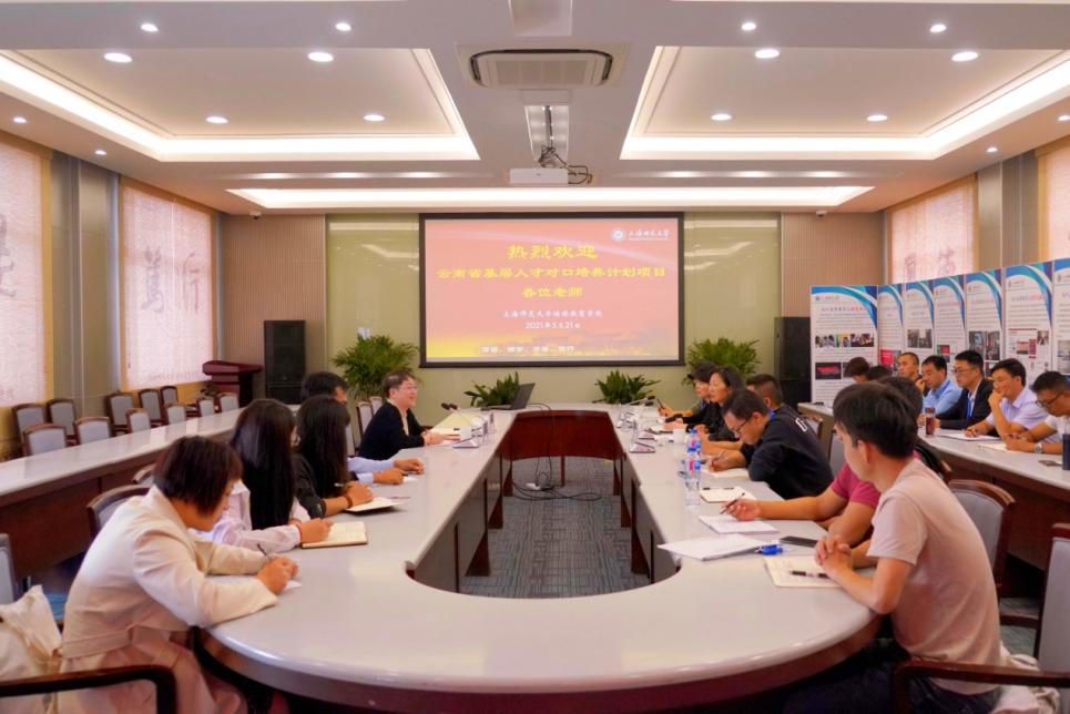 5月21日,上海师范大学继续教育学院院领导组织全体人员在学院会议室召开考察交流座谈会,会议由上海师范大学继续教育学院陈宇飞副院长主持。座谈会上,我校继续教育学院唐瑛院长介绍了“云南省基层人才对口培养计划项目”相关情况及云南师范大学的培养模式及特色;上海市特级校长、延安中学党委书记马越就上海市中学教育及相关政策措施做了解读、对学校常规管理提出了个人见解。学员们十分珍惜宝贵的学习机会,纷纷踊跃发言请教,围绕如何提高学校治理、教学管理能力和个人专业发展等方面与与各专家领导深入探讨交流。