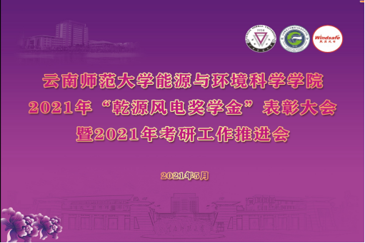 5月28日下午,能环学院举行2021年“乾源风电奖学金”表彰会暨2021年考研工作推进会。会议邀请乾源风电科技有限公司总经理庄严先生出席,学院党委书记刘莹老师、院长徐锐老师、党委副书记范荣康老师、学院副院长陈玉保老师等学院班子成员、辅导员、班主任、教师代表出席了大会,获奖学生、2018级全体本科生、其他各年级学生代表参会。会议由党委副书记范荣康老师主持。