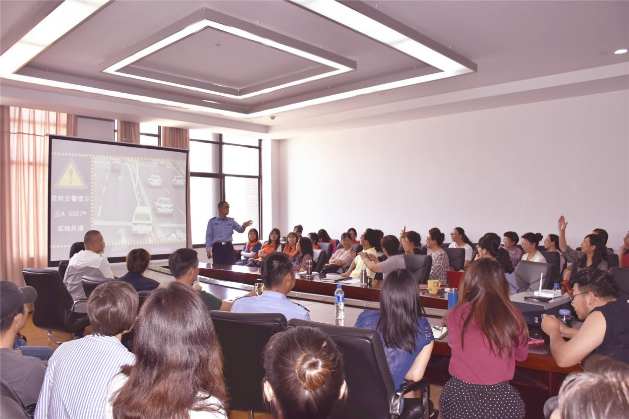 王磊警官以《交通安全金字塔——安全驾驶的五个侧面》为题,用幽默风趣的话语、详实生动的案例,从原理、道理、法理、心理、天理五个侧面教大家如何更好地保障交通安全。王警官不仅给大家带来了雨天驾驶的冷知识、介绍了昆明市交通标线的新变化,更对我们常常接触却不能准确理解和运用的交通规则作了讲解。此外,夏添警官也对在高速公路遇到交通事故如何安全处理的问题作了详尽解答。