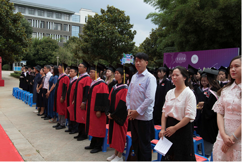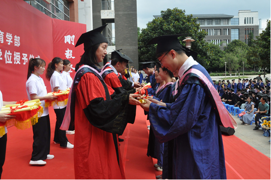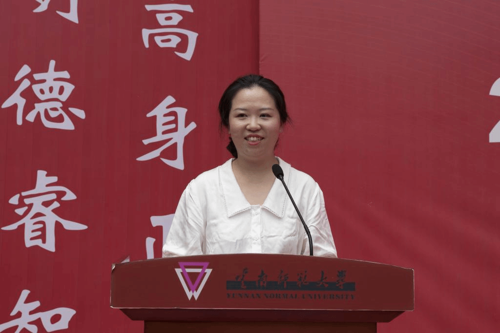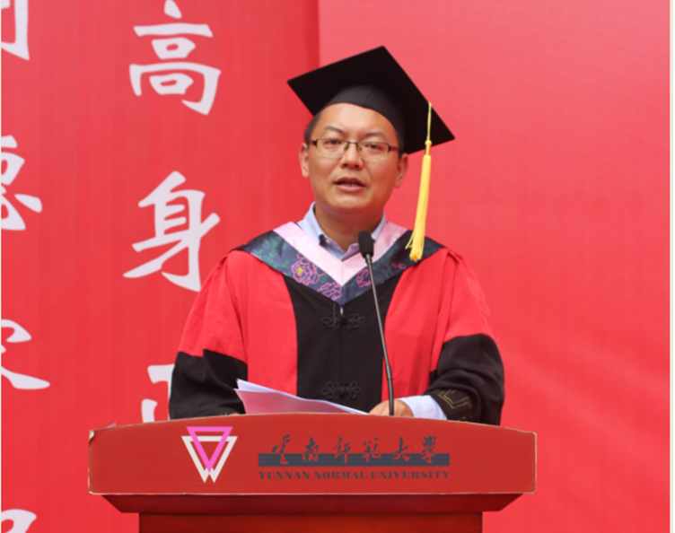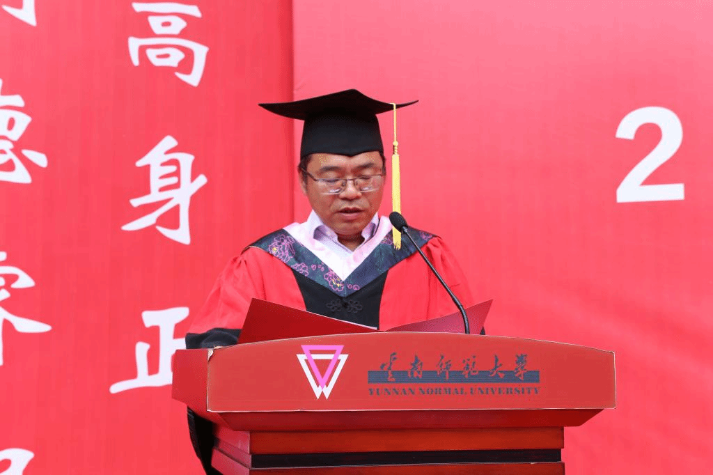 教育学部禹紫灵书记致辞,向毕业生顺利毕业致以热烈的祝贺,向为学生的成长默默耕耘、辛勤奉献的老师们、家长们表示衷心的感谢和崇高的敬意。他指出,在过去的几年中,学生们走过了属于自己的“小时代”,也见证了属于祖国的“大时代”,全体师生更深刻体会到家与国命运与共,时代发展和个人成长休戚相关。他向毕业生们提出了三点希望:一是希望大家做一个有家国情怀的人。作为新时代的青年,希望毕业生们胸怀大志,以“国家兴亡、匹夫有责”的情怀,自觉将个人理想融入到国家富强、民族复兴、人民幸福的历史洪流中,在各自岗位上勇挑报效祖国的重担,做一个有家国情怀的人。二是希望大家做一个有担当作为的人。无论是在校园里刻苦学习,还是的工作中勤奋努力,唯有自强不息、奋斗不止,才能脱颖而出、才能担当作为。三是希望大家做一个有广阔胸襟的人。希望同学们走上社会、走上工作岗位后,既要有利益考量,更要有理想情怀,矢志追求更有高度、更有境界、更有品位的人生。