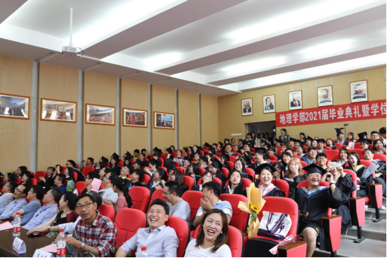 2021年6月24日,地理学部2021届毕业生毕业典礼暨学位授予仪式在睿智五号楼114报告厅及学部大厅举行。学部领导、学部学位评定委员会委员、教师代表及400余名本硕博毕业生参加了典礼,典礼由学部党委副书记吕峥主持。