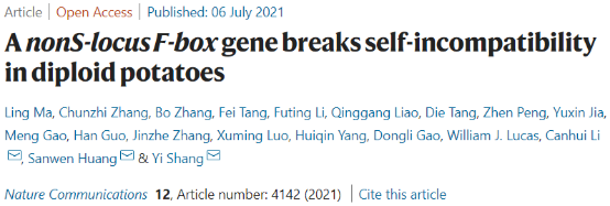 2021年7月6日,《自然—通讯》在线发表了中国科学家和荷兰科学家背靠背克隆的马铃薯自交亲和基因Sli。云南师范大学(以下简称云师大)教授尚轶团队和中国农业科学院深圳农业基因组研究所(以下简称基因组所)黄三文团队合作,进一步解析了该基因的功能。