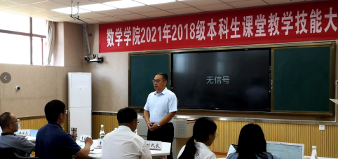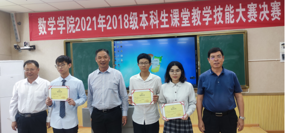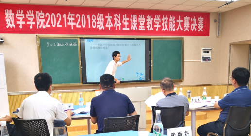 为提高师范生的教育教学能力、丰富校园文化生活、增强自信、提高专业技能,数学学院于4-7月举行了2018级本科生课堂教学比赛。本科生课堂教学比赛是提高师范生教学技能的重要途径之一,要求“全员参与、全院参与”,即每级学生在大三下学期“全部师范生”积极参加教学比赛,认真准备,通过比赛促进师范生教学技能和教学素养的提高;“全院教职工”参与教学比赛,开展讲习、课堂教学辅导、担任评委等。此次课堂教学比赛按初赛、复赛和决赛依次进行。本次大赛从教师口语、教态、课程内容设计、重难点把握、教法学法、信息技术使用、板书设计、说课能力等方面对选手进行综合考核。