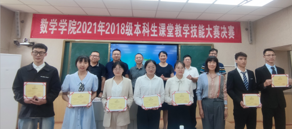 至此,数学学院2021年2018级本科生课堂教学技能大赛决赛圆满结束。本次大赛的圆满结束,离不开武友德副校长、教务处陈新处长等各级领导的大力支持;离不开数学学院全体教职工的辛勤付出;离不开教务办老师们前期的大量准备工作以及数学学院部分研究生的无偿志愿工作。