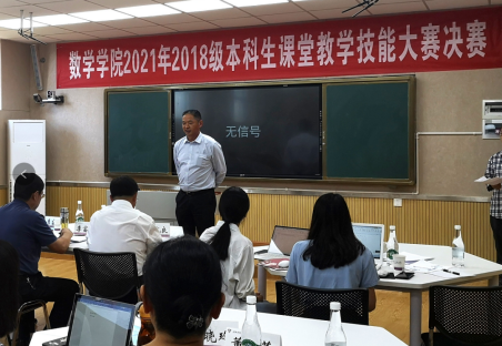 数学学院2018级全体师范生358人进行了讲习培训,随机分成25个小组进行了课堂教学技能大赛初赛,每组两位评委教师,遴选2名学生参加复赛。复赛随机分成5个小组进行,每个小组遴选2名进入决赛。共10名优秀选手进入决赛。