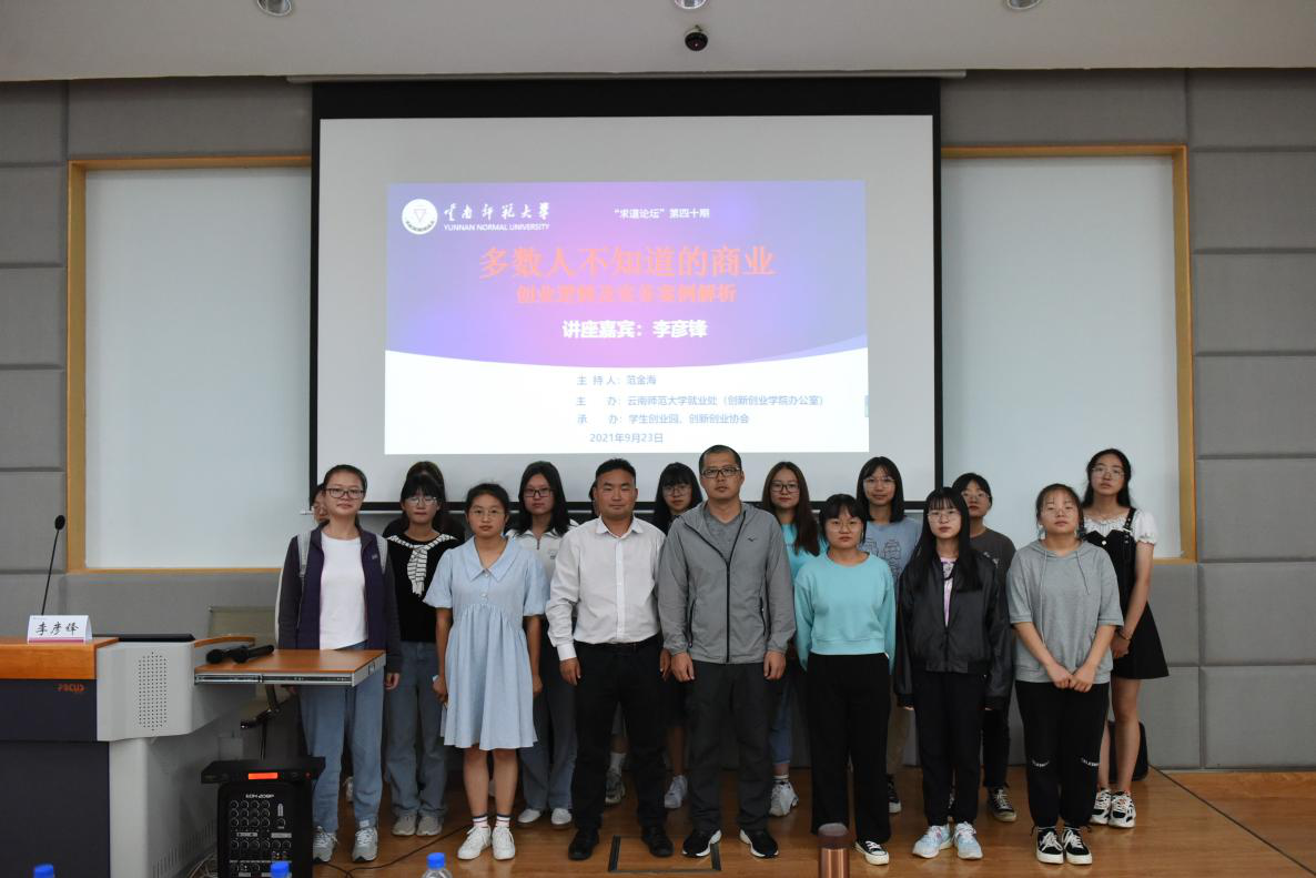 本次活动邀请到教育部、云南省科技厅首批入库双创评审专家,云南省发改委、商务厅、人社厅、工信厅、教育厅专家顾问,省内外二十余家高校创新创业导师李彦锋作为主讲嘉宾,他的讲座主题为:《多数人不知道的商业——创业逻辑及实务案例解析》。