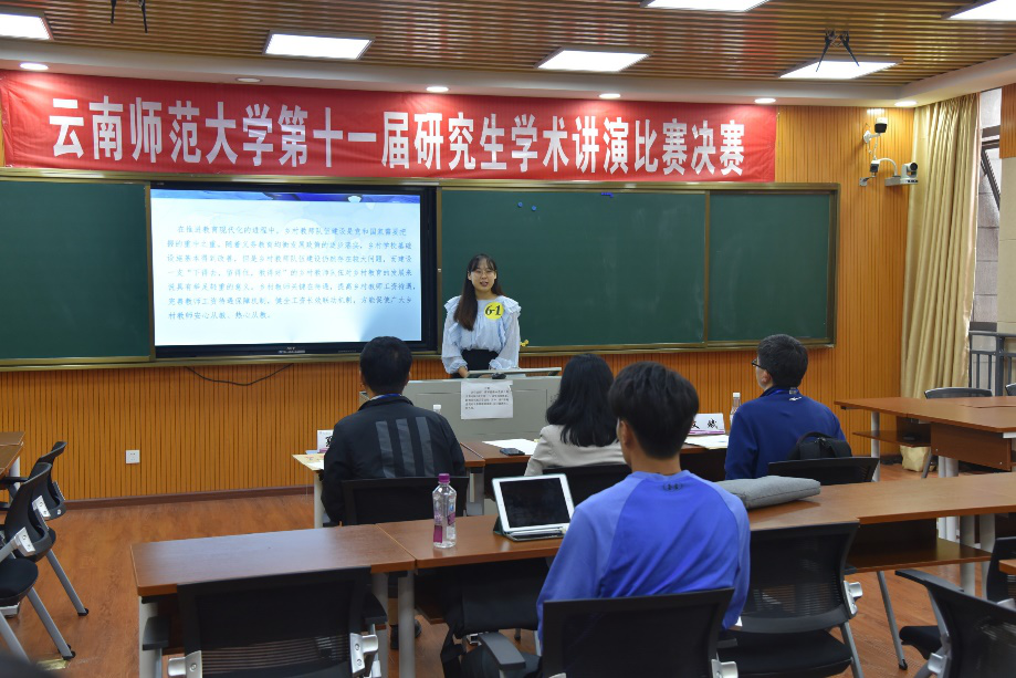 9月25日,云南师范大学第十一届研究生讲演比赛决赛在呈贡校区实训楼举行。研究生讲演比赛分初赛和决赛两个阶段,经过21个学院(学部)514名研究生、半个多月的初赛角逐,共产生75名选手进入到本次决赛,为体现决赛的学术水平,研究生院邀请了32位校内各学科领域知名专家作为评委,现场还有来自各个学院(学部)的研究生同学观摩比赛。