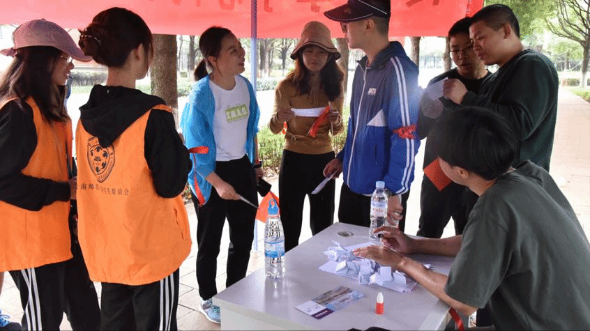 现场除了有展示个人能力的“筷运乒乓”、“欢乐排球”、“乒乓球水上漂”、“飞花令2.0”、“绕口令”、“K线大师”等单人项目在等待着考验同学们的智力与体力,还有展现团队精神的“蒙眼锣鼓”、“背对背拥抱”、“你拼我猜”、“成语接龙”、“强渡硫酸河”、“这是什么垃圾”等多人项目考验同学们的团队协作能力。