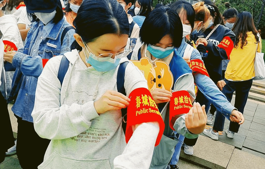 仪式最后,志愿者们统一佩戴“春城治安志愿者”红袖标集结出征。