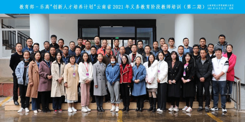 10月16日、23日上午,教育部—乐高“创新人才培养计划”2021年义务教育阶段第一、二期教师培训相继在我校一二一西南联大校区开班。来自昆明、普洱、丽江、昭通、玉溪、版纳、怒江的100名义务教育阶段学校管理者们参加了开班仪式。