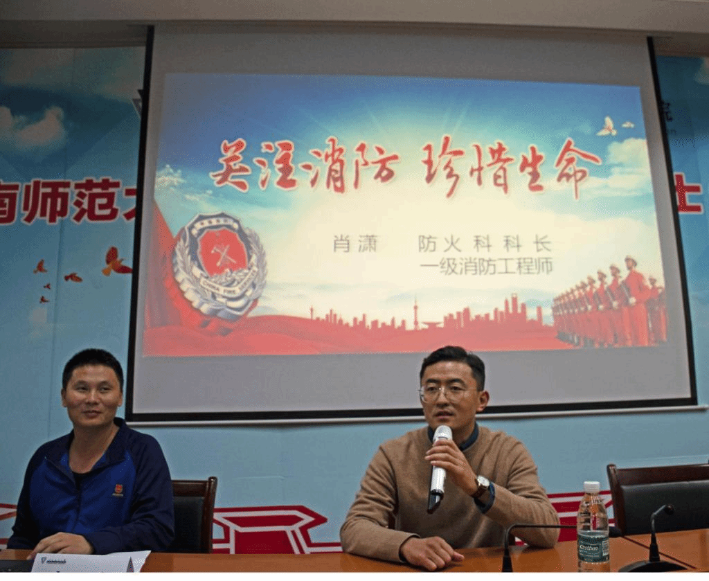 徐振坤副书记指出讲座的开展旨在提高同学们的消防观念和安全意识,增强火灾的自救能力,并呼吁同学们重视校园消防安全,共建平安校园环境。