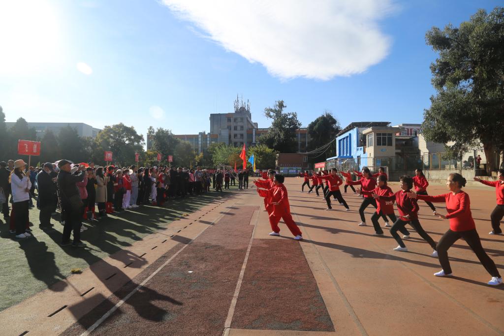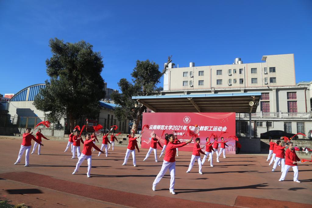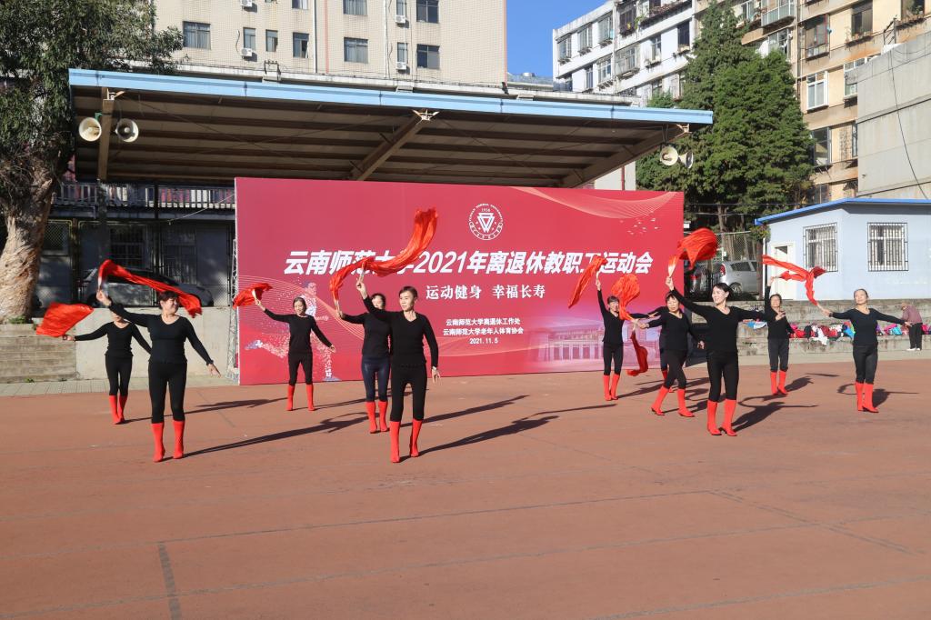 在雄壮的国歌声中,云南师范大学2021年离退休教职工运动会开幕。老同志们沐浴着灿烂的阳光,欣赏了云南师范大学老年大学学员们带来的太极拳和柔力球的表演,舞蹈队也为老同志们献上一曲轻松愉快的健美操。