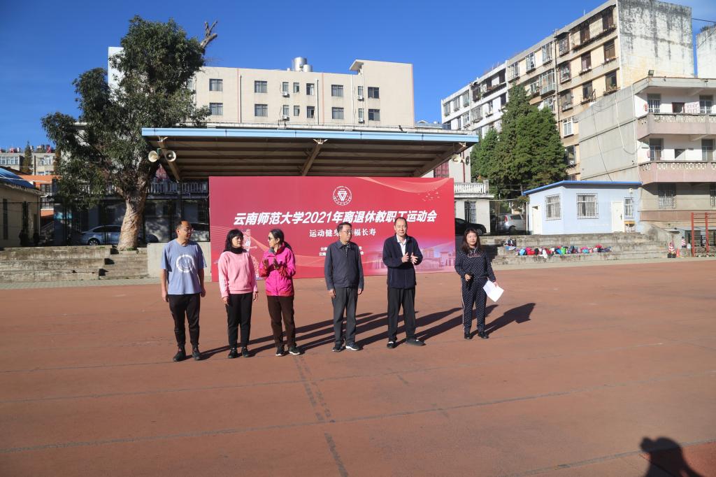 11月5日上午,为丰富我校离退休老同志精神文化生活,离退休工作处与云南师范大学老年人体育协会在一二一西南联大校区田径场联合举办了2021年离退休教职工运动会。