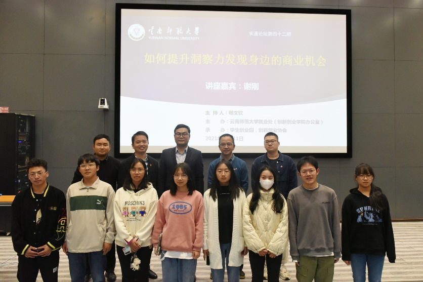 本期论坛邀请到普益企业管理咨询有限公司昆明分公司家庭金融资产配置理财师谢刚作为主讲嘉宾,谢刚老师擅长企业战略顾问及商业构架梳理,一直以来为企业及个人提供综合金融资产配置及投资决策服务。本次讲座的主题为:如何提升洞察力,发现身边的商业机会。讲座由就业处创业实践科科长明文钦老师主持。