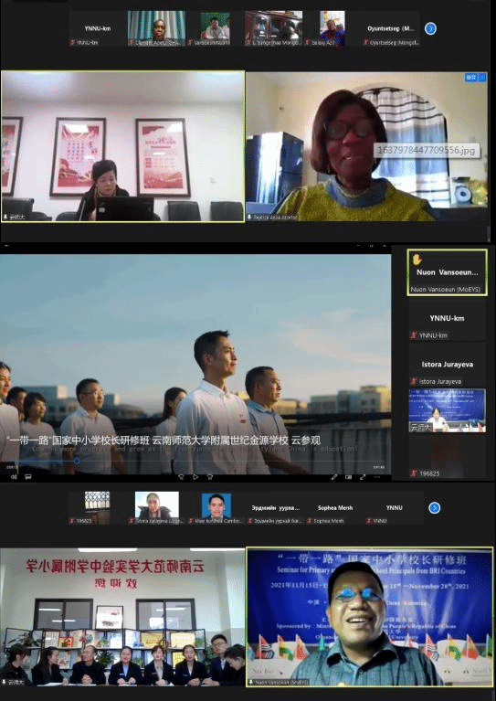 本次研修班学员来自亚洲、大洋洲、北美洲、非洲四个大洲,柬埔寨、古巴、基里巴斯、蒙古、赞比亚、加纳、乌兹别克斯坦七个国家,共44名校长参加。本次研修班采用线上“云研修”模式,为期14天,安排了专题讲座、专题研讨、云参观及文化体验,学员通过直播与录播方式进行研修,圆满完成了各项研修活动。