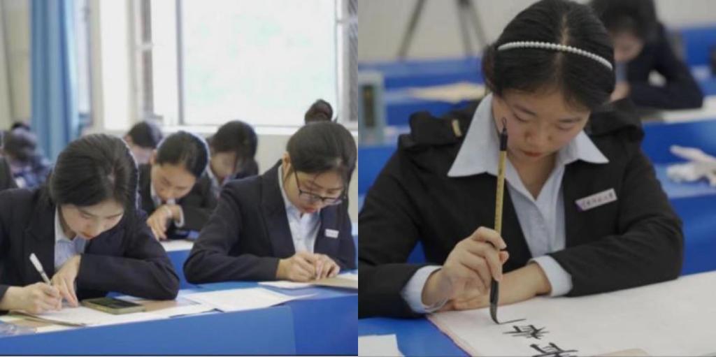 为检验同学们的书写能力,9日下午,书写技能大赛在汇文楼举办。比赛邀请书法协会三位代表担任评委,分硬笔、软笔两个赛场,采取现写现评的方式进行。经评委认真评选后,毛笔组共13位同学获奖,硬笔组共38位同学获奖。
