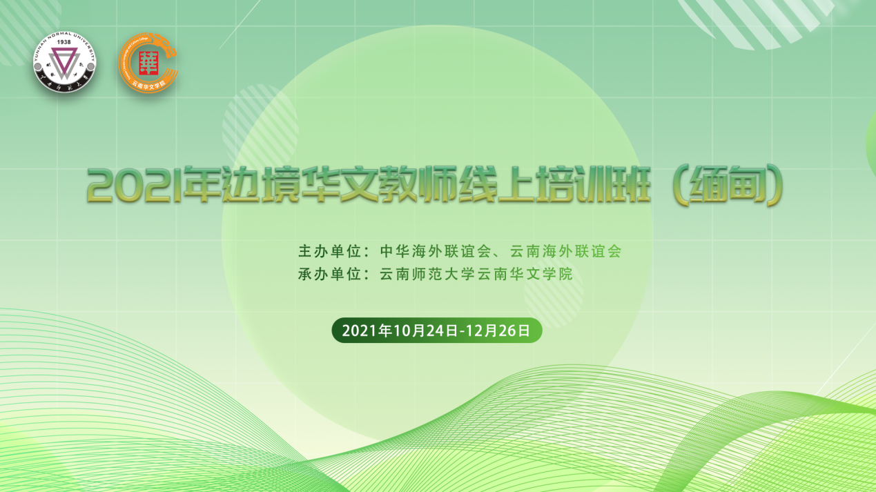 12月26日下午,由中华海外联谊会、云南海外联谊会主办,我校云南华文学院承办的2021年边境华文教师线上培训班结业仪式在线上顺利举行。缅甸东枝果敢文化会赵秀兰副会长,云南华文学院党委书记和雪莲、院长王秀成、学院相关领导、汉语国际推广师资培训基地负责人及授课教师代表和来自缅甸东枝果文中学、东华语言与电脑学校、兴华学校的50名本土华文教师参加了结业仪式,仪式由汉语国际推广师资培训基地常务副主任沈毅教授主持。