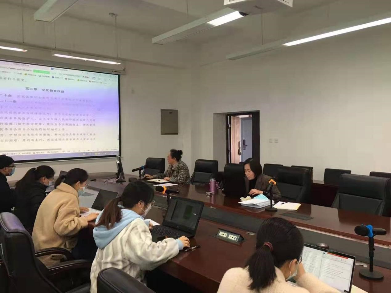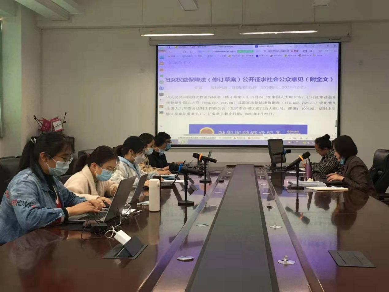 2021年12月30日上午,云南师范大学妇联组织的《中华人民共和国妇女权益保障法》(修订草案)意见征求座谈会在呈贡校区明德一号楼室顺利举行,我校妇联副主席杨九迎、法学与社会学学院法律系副教授杜爱萍以及七名法律专业研究生参会。会议由杨九迎副主席主持。