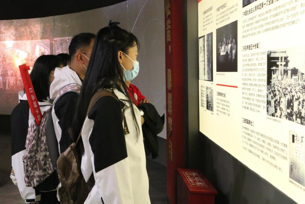 在沉浸式互动体验剧分展部分,演员倾情演出,情景环环相扣,参观人员仿佛回到了百年前五四运动的现场,反军阀、惩国贼的青年救亡运动在眼前呈现……时间线拉回到现在,新时代脱贫攻坚、抗击疫情、科技发展的画面牵动着观众的心,百年历程、百年奋进、百年辉煌,一代代青年先后以青春之我创建青春之国家、青春之民族,为实现中华民族伟大复兴而奋斗不息。最后一个环节,讲解员带领现场观众一起重温了入团誓词,铿锵誓言久久回荡、振奋人心。