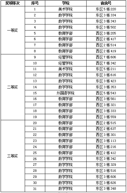 和谐在我寝——“你我约定•共创雅室”宿舍公约大赛获奖名单