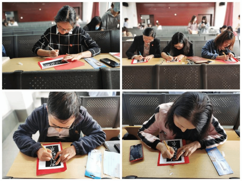 主题党日活动伊始,全体师生党员集体观看了习近平总书记考察调研中国人民大学的新闻视频,认真学习习近平总书记在中国人民大学考察时的重要讲话精神,并畅谈了各自的感想。随后,师生党员以剪纸、刻纸、绘画、书法等表达了自己的感悟。大家纷纷表示,教育要同国家之命运、民族之前途紧密联系起来,作为师大的学子和教育工作者,要牢记“刚毅坚卓”的校训,要传承好师德,始终坚定不移听党话、跟党走,传承红色基因,践行初心使命。