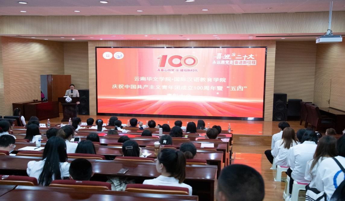 为继承和弘扬五四精神,培育社会主义核心价值观和爱国主义精神,进一步激励广大团员青年坚定理想信念、立志成长成才,云南华文学院、国际汉语教育学院于5月19日举行“庆祝中国共产主义青年团成立100周年暨‘五四’表彰大会”,学院全体党政领导班子成员获奖代表参加了会议。