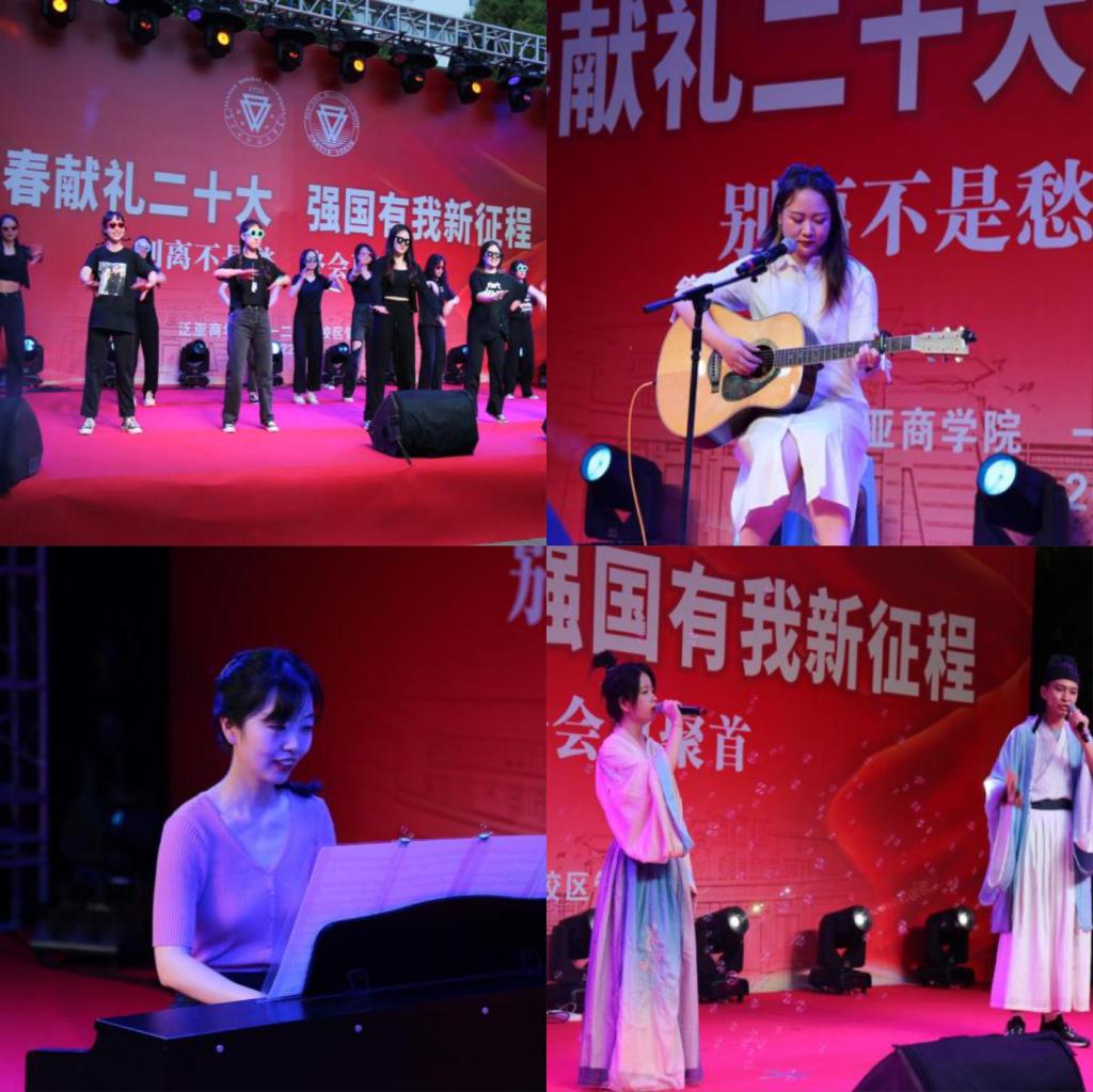 6月1日晚,泛亚商学院联合一二·一校区管委会在一二·一校区举行了“青春献礼二十大 强国有我新征程”文艺晚会。一二·一校区管委会、西南联大干部教育学院、继续教育学院、后勤保障处、保卫处、西南联大博物馆相关负责人以及泛亚商学院领导班子、师生代表参加了本次晚会。