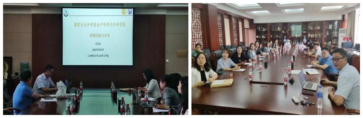 学院任志远老师向广大青年教师分享了成功申报国家社科“中华外译项目”经验。任志远老师主持的《中国政治制度史(泰文)》,实现了我校在国家社科基金中华学术外译项目立项上零的突破,也是云南省2021年度唯一获立此项项目。会上,任志远老师分享了他申报中华学术外译项目的经验和心得体会,从项目申报的准备工作、选题思路和项目申请书与支撑材料的撰写等各个方面进行了介绍。