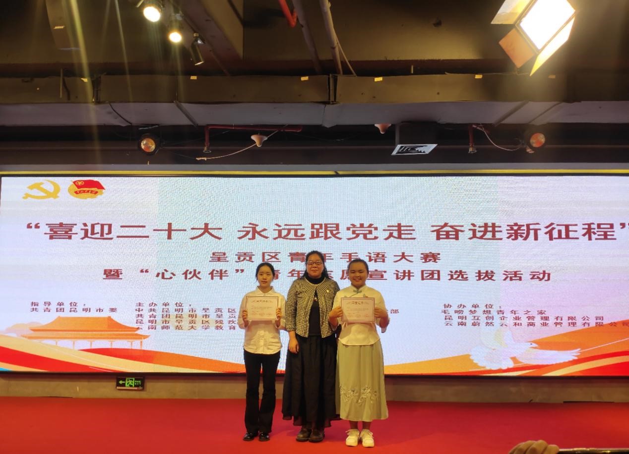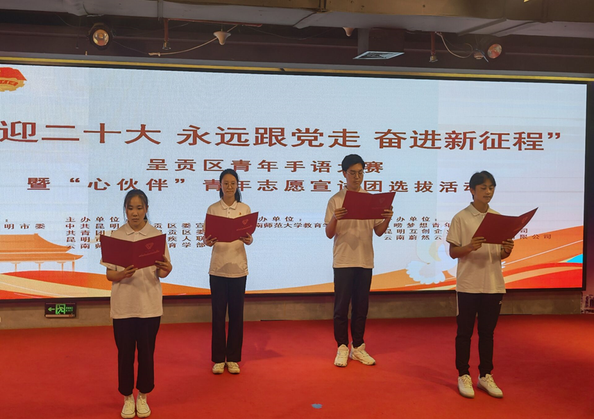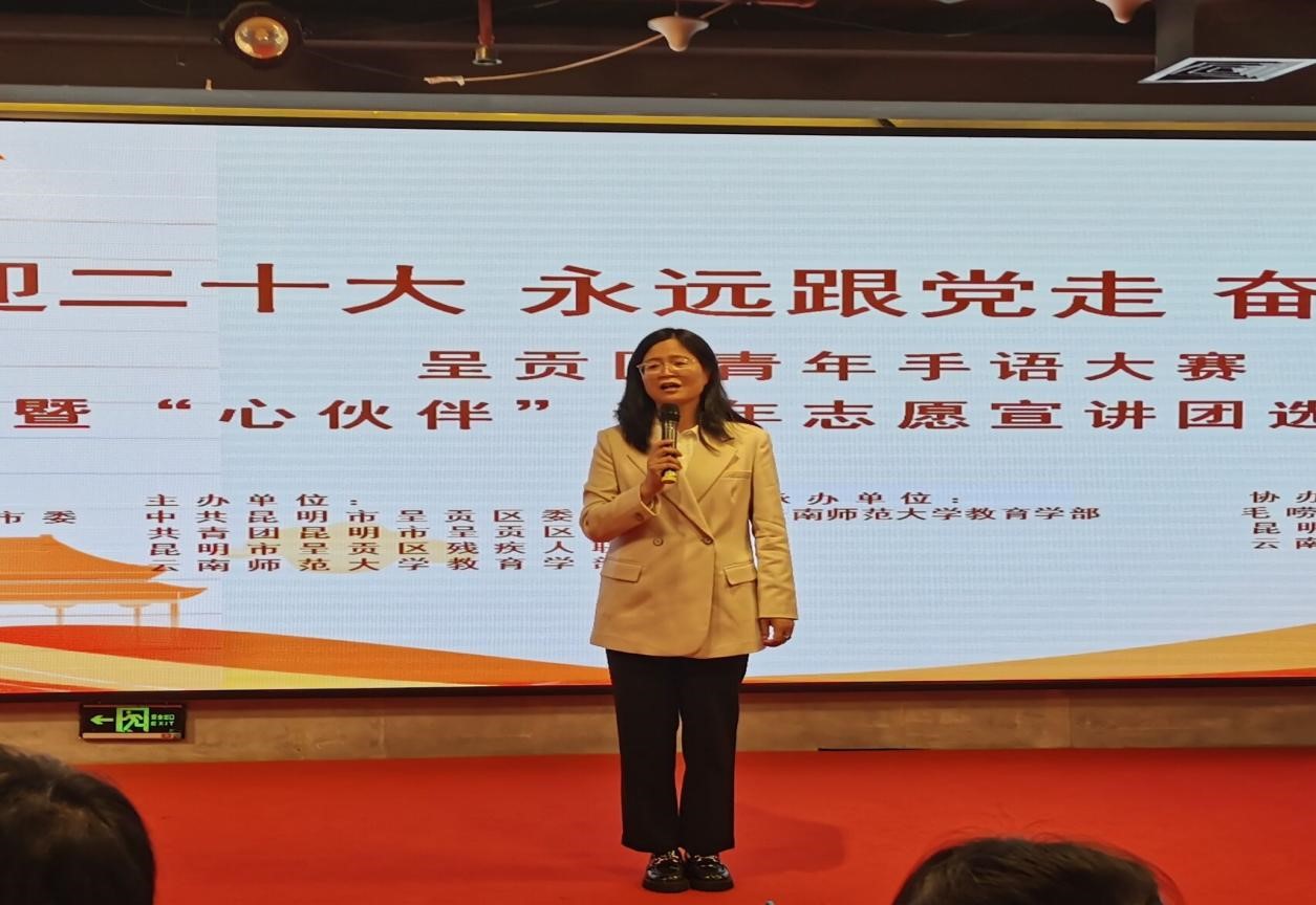 近日,为弘扬“奉献、友爱、互助、进步”的志愿者精神,充分发挥党团共建服务联系点积极作用,呈贡区委宣传部、共青团呈贡区委、呈贡区残联、云南师范大学教育学部在昆明妇女创业创新示范中心联合开展“喜迎二十大永远跟党走 奋进新征程”呈贡区青年手语大赛暨“心伙伴”青年志愿宣讲团选拔活动。教育学部特殊教育系副教授张晓燕、团委副书记闫晓飞及110余名学生代表参与此次活动。
