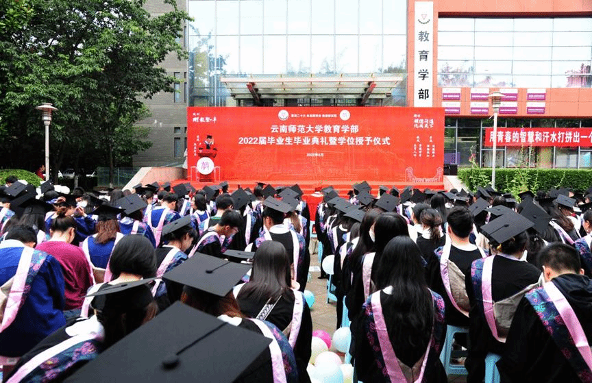 6月24日上午,教育学部2022届毕业生毕业典礼暨学位授予仪式在明德4号楼前小广场举行。学部学位评定委员会委员禹紫灵、李长吉、陶云、尹可丽,其他领导班子成员,教师代表以及教育学部全体2022届毕业生参加了典礼。典礼由教育学部党委副书记朱静虹主持。
