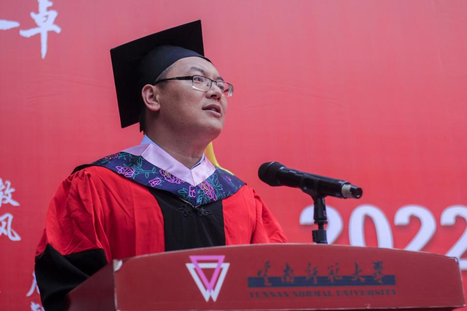 教育学部党委书记禹紫灵致辞,向毕业生们致以祝贺,向为学生的成长默默耕耘、辛勤奉献的老师们、家长们表示感谢和敬意。禹书记希望教育学部全体师生一路与党同行,与国同行,与人民共进、与时代同行,希望毕业生们做有家国情怀的人、有担当作为的人、有广阔胸襟的人。