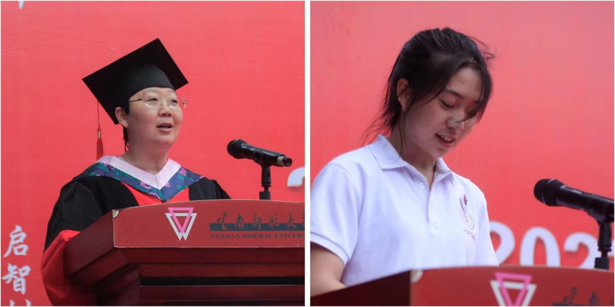 2018级课程与教学专业博士研究生芈莹和2020级教育学专业本科生张娜同学作为代表毕业生发言,认为教育学部是大家共同的家,向学校、学部、老师和同学们表达感谢。