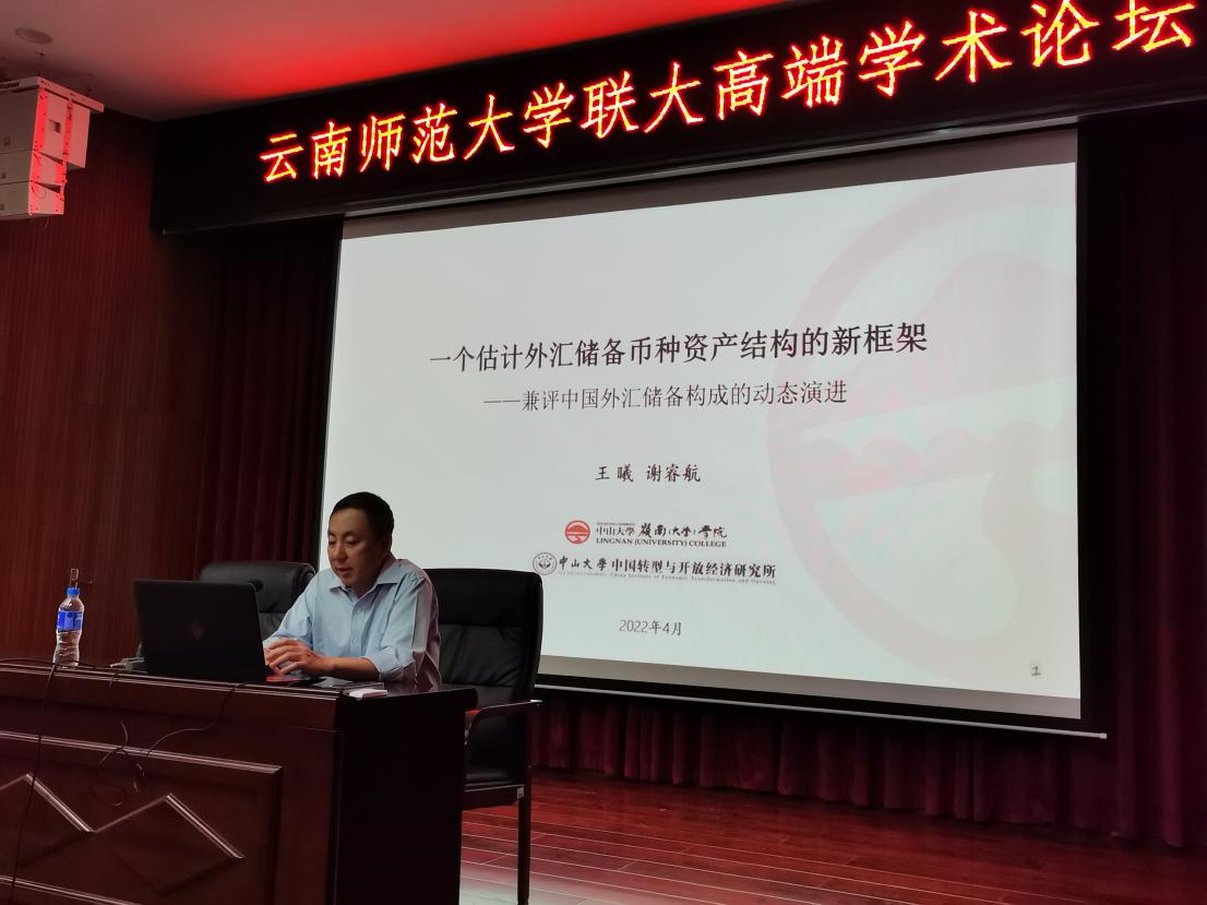 为加强内涵建设,活跃校园学术氛围,提升学生学术素养,6月27日,经管学院“联大高端学术论坛”在明德1号楼报告厅顺利举办。论坛特邀中山大学经济研究所所长、博士生导师王曦教授作了主题为《一个估计外汇储备币种资产组合的新框架——兼评中国外汇储备构成的动态演进》的学术报告。本次学术论坛由经济与管理学院院长陈长瑶教授主持,经济与管理学院教师代表和全体研究生参加了论坛