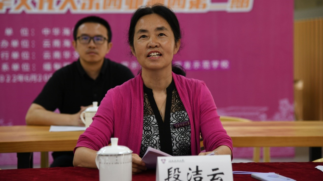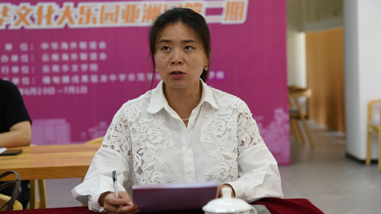 教师代表张逸闲老师发言,她很高兴能向缅甸同学们讲授中国服饰文化,为同学们打开了解中国文化的一扇窗口。她希望同学们能以此次线上学习为起点,延续中华文化大乐园的学习宗旨,通过更广更深的渠道,继续探索中国之美、云南之美。