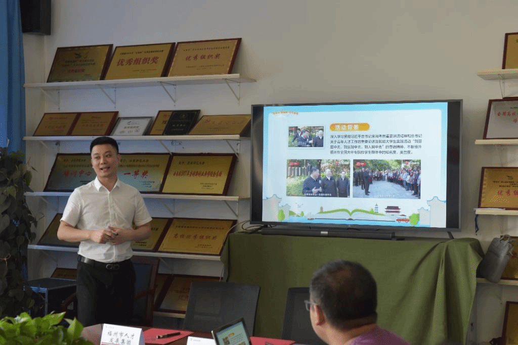 李红处长对福州市人才发展集团到学校考察调研表示热烈欢迎,介绍了学校毕业生就业基本情况、就业措施及学校访企拓岗工作开展情况。李朝波董事长对福州情况和集团业务进行了介绍,并对人才引进和福州高校毕业生就业创业政策进行了讲解。人才公共服务部负责人郭国明向与会人员介绍了“好年华·聚福州”引才活动校园宣传推介内容。