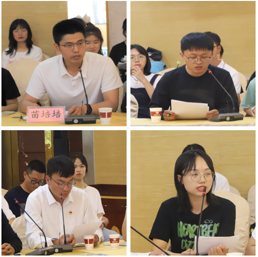 图/地理学部团委书记苗培培及各小组代表发言
