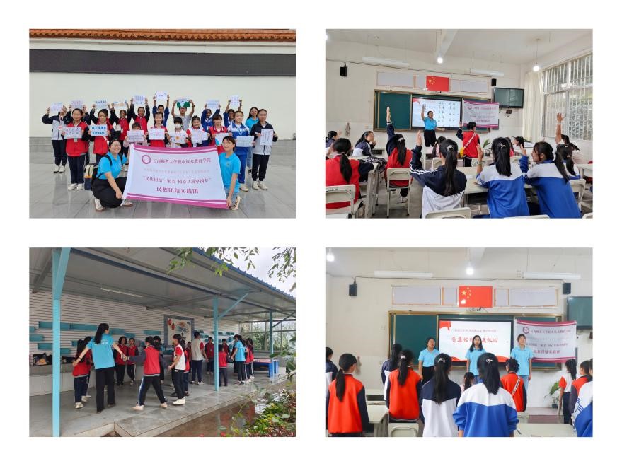 民族团结一家亲,乡村振兴齐步走。实践团在易门县六街中学少年宫开展推广普及国家通用语言文字、普及民族政策、讲述楷模故事、朗诵团结诗歌等民族团结教育系列活动。成员们用生动有趣、喜闻乐见的方式普及我国的民族政策,增强乡村地区青少年对中华民族的认同感,铸牢中华民族共同体意识,自觉维护民族团结。