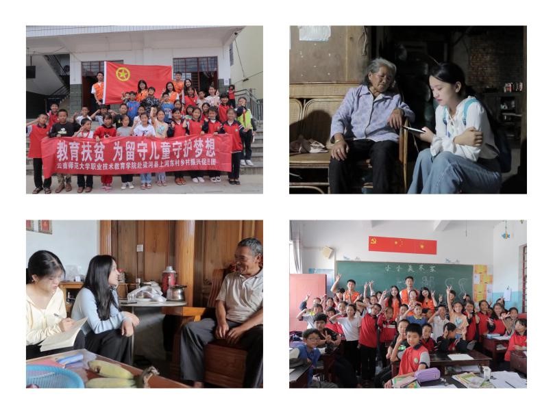 助学支教送温暖,点亮乡村振兴梦。“汇聚青春力量 助力乡村振兴”实践团赴铜厂乡中心小学少年宫开展助学活动,“红色筑梦·爱心助学”实践团赴易门县六街中学开展支教活动。实践团成员们结合专业特长和当地孩子的实际需求,开设皮影戏、手工制作、绘画、泥塑、书法、电子琴、古筝、舞蹈、阅读、棋牌、体育、科普等多项课程,进一步开阔乡村儿童的视野,打造成长“第二课堂”,点亮乡村儿童的知识梦。