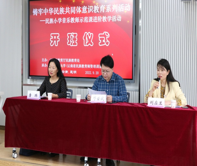 20日上午,教育厅民族教育处处长邓世斌,继续教育学院院长唐瑛、副院长刘应兰和来自13个州市、79所民族学校的79位音乐教师在一二一联大校区参加了开班。仪式由刘应兰主持。