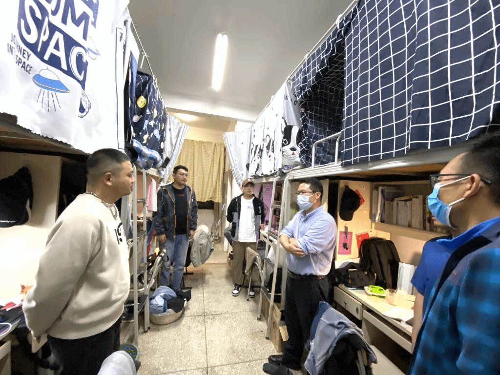 杨栋会和李富昌先后到西区10栋男生公寓和西区7栋女生公寓,每到一处都与同学们亲切交谈,深入了解校园疫情管理期间同学们的思想动态、心理状况、学习生活情况,倾听同学们心声,嘱托同学们要做好个人防护,理解支持学校学院疫情防控政策的用心和苦心,严格遵守疫情防控管理要求。鼓励同学们珍惜在校学习时光,夯实专业基础,提高自身理论水平,做好未来职业规划,立大志、明大德、成大才、担大任。