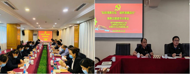 为推进校办企业廉洁文化建设,加强党员和干部职工廉政学习,筑牢纪法底线,涵养廉洁文化,巩固校办企业风清气正的良好政治生态,落实《资产公司“清廉企业”建设实施方案》中2022年开展的“十个一”专项行动,9月公司党总支在全司开展了“涵养廉洁文化”读书分享会活动。活动共设置六个会场,分别由公司领导班子成员主持,公司及下属企业中层以上管理干部、关键岗位职工、共产党员及其他职工代表共计100余人参加了活动。